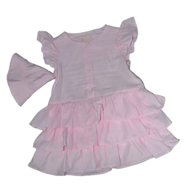 Buttoned Collar Dress with Ruffles and Hat – Girl