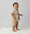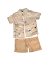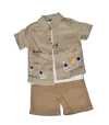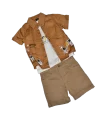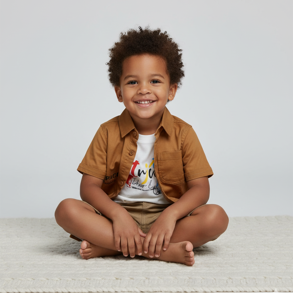 Launch your little one’s style with this cool 3-piece set featuring an astronaut-themed khaki shirt, a basic tee, and comfortable matching shorts. Perfect for stylish, earthbound adventures!