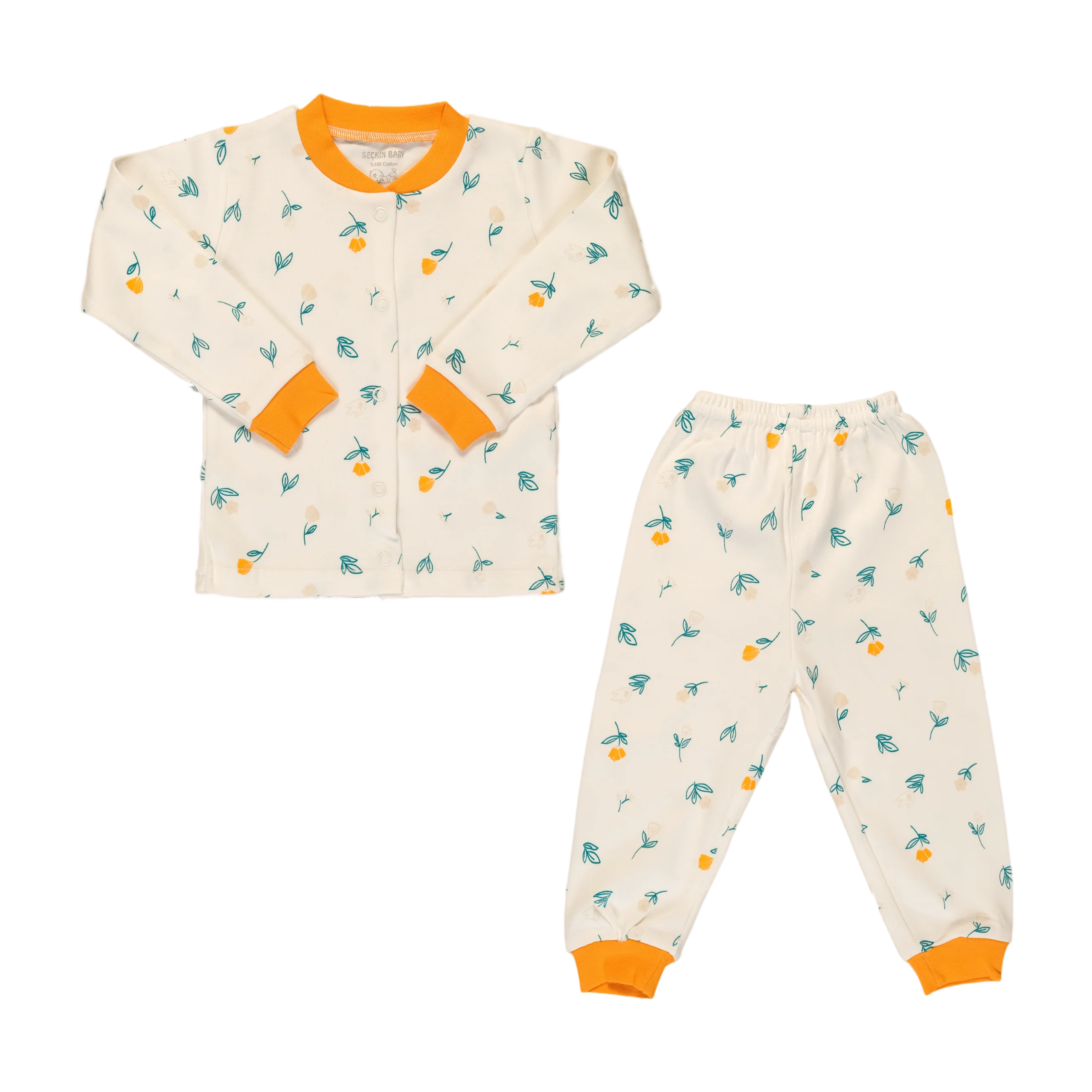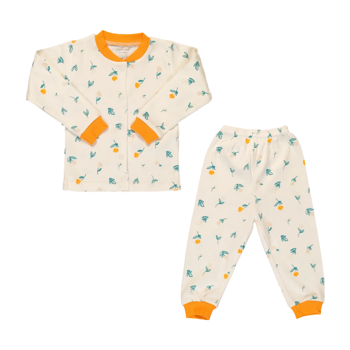 Be the first to review “Orange Floral Snap-Button Pajama Set”