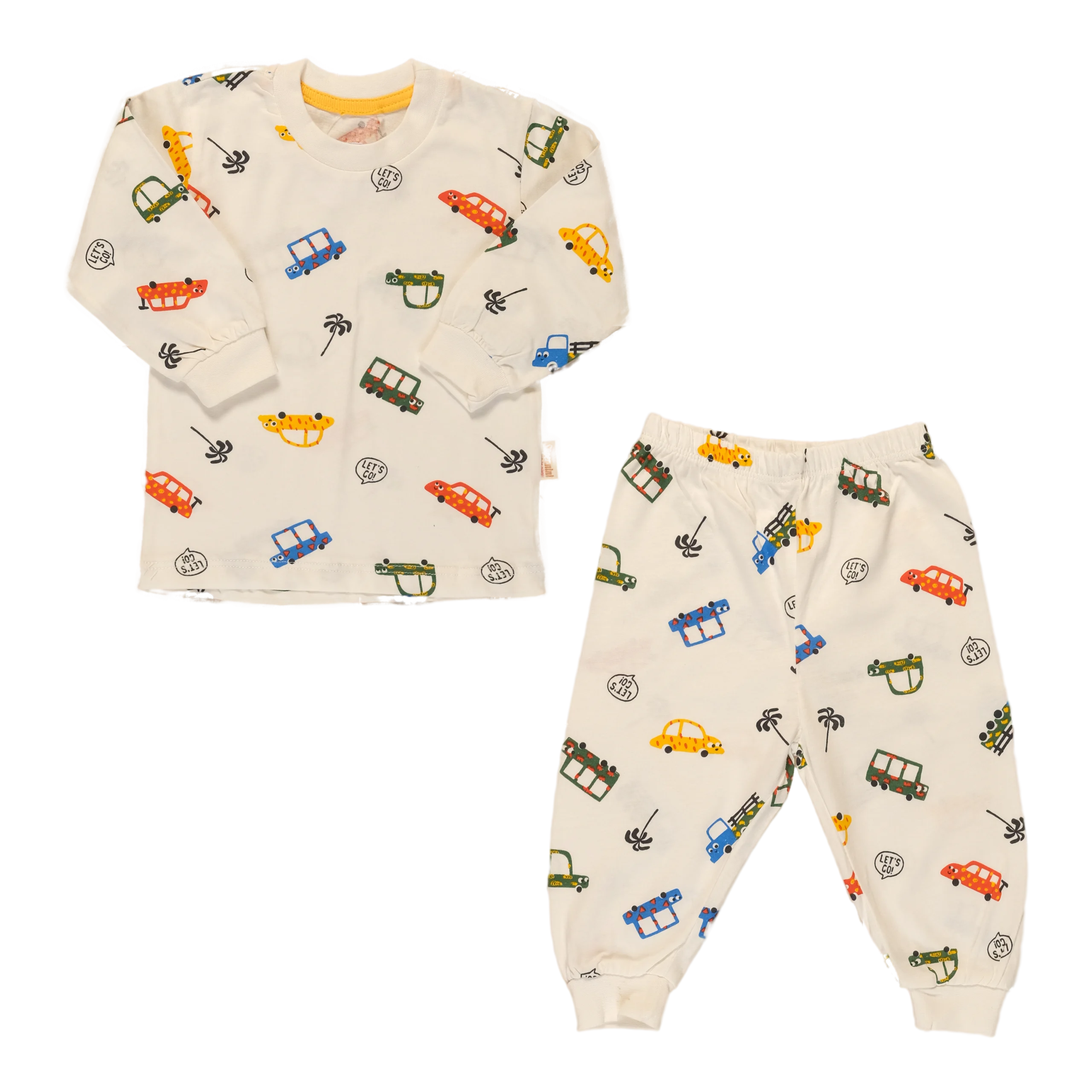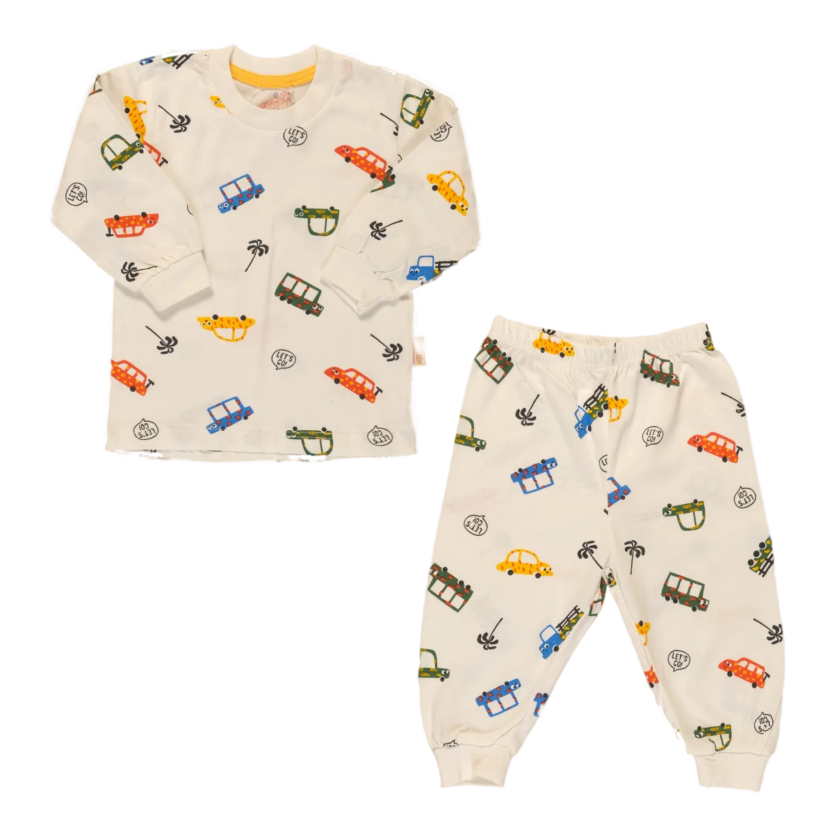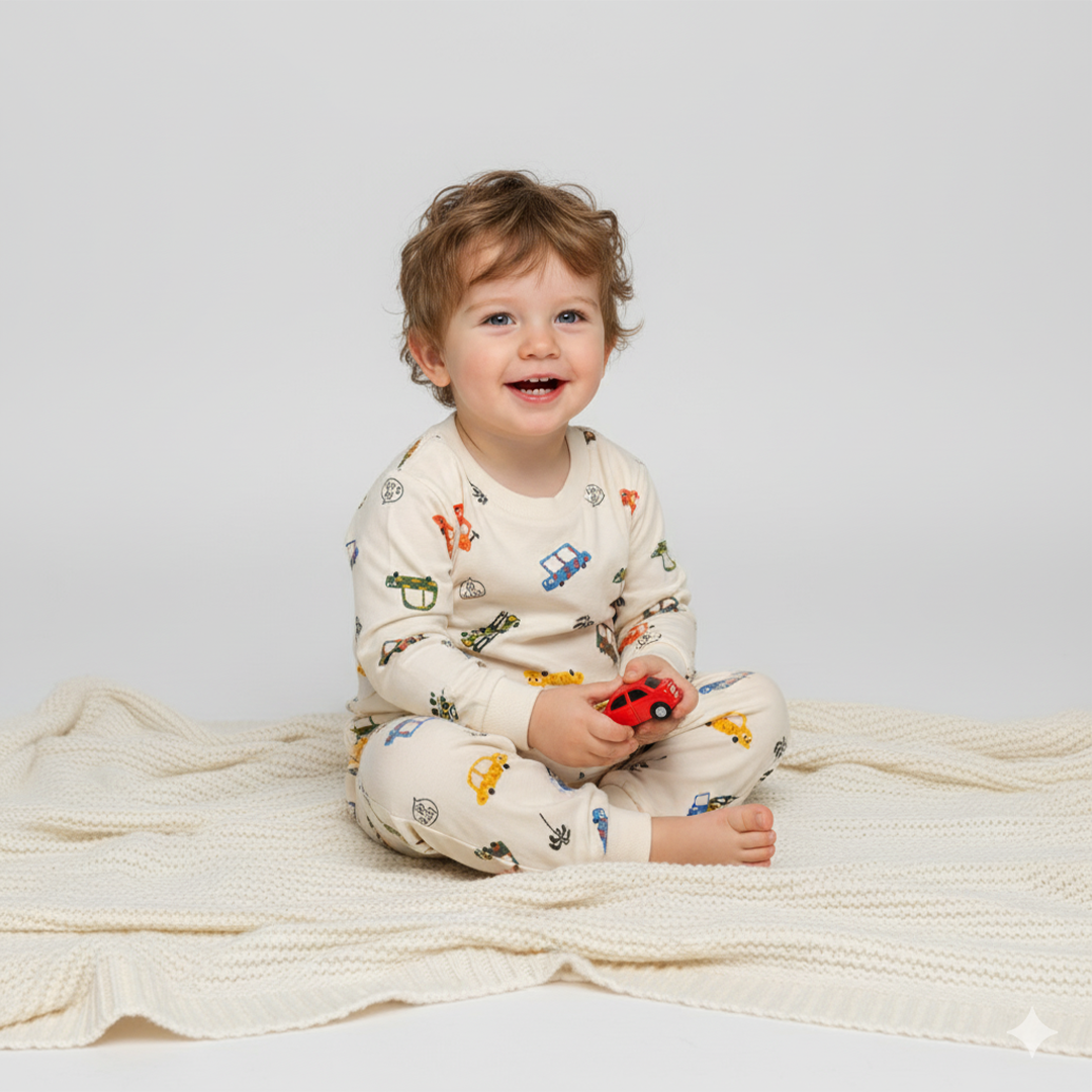 Gear up for bedtime adventures with this ultra-soft, 2-piece pajama set featuring a playful, colorful car and tropical print. Designed for maximum comfort and style, making sleep routines fun and easy.