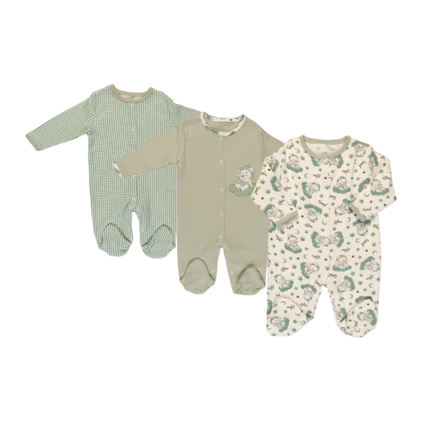 Set of 3 Checkered Snap-Button Romper – Girl