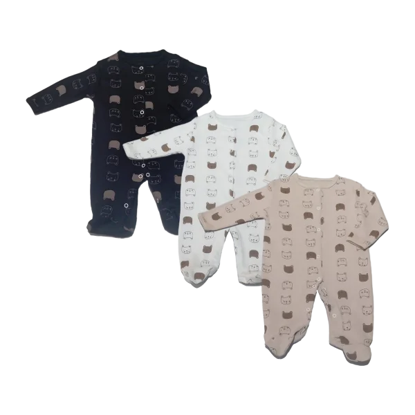 Set of 3 Buttoned Bear Head Rompers
